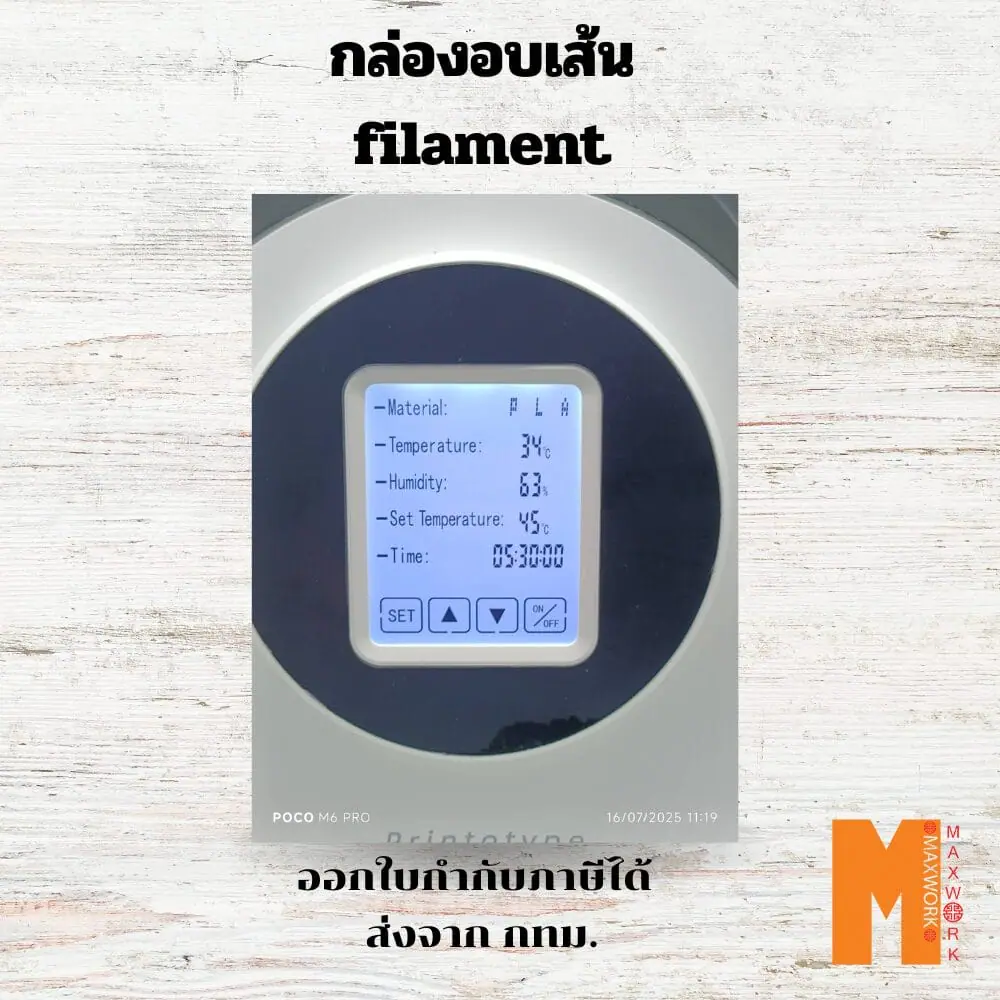 – **PLA:** อบที่ 45°C อบนาน 6 ชั่วโมง