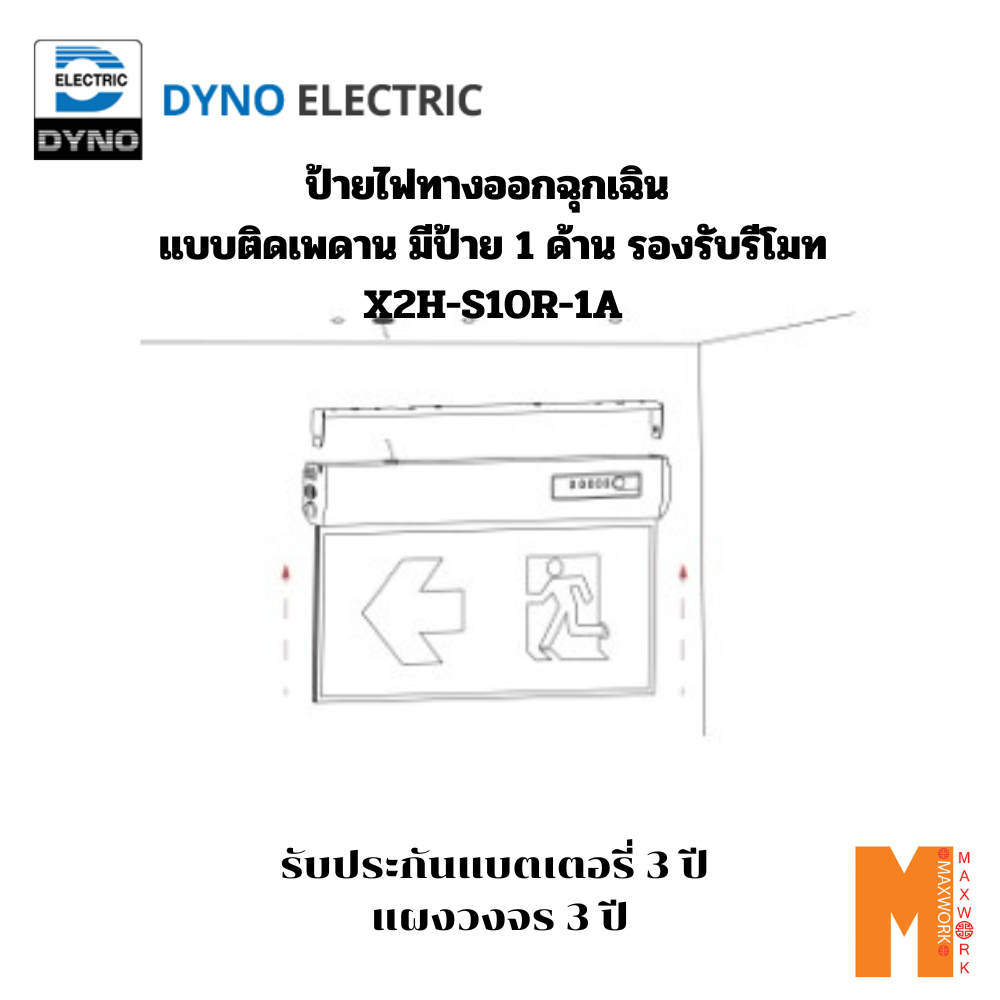 ป้ายไฟทางออกฉุกเฉิน Dyno รุ่น X2H-S10R-1A มีป้าย 1 ด้าน รองรับรีโมท (ราคารวม vat แล้ว)