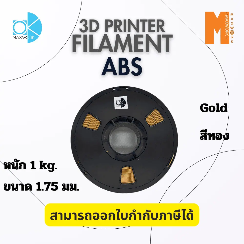 เส้นใยพลาสติก ABS Filament 3D Abs Okmaxwork 1.75mm./1kg. Gold สีทอง