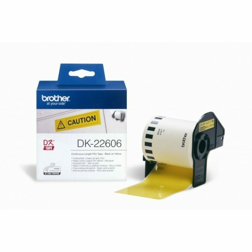 – Brother DK-22606 เทปฟิล์มต่อเนื่อง ขนาาด 62 mm.* 15.24 m. พื้นสีเหลือง ตัวอักษรดำ