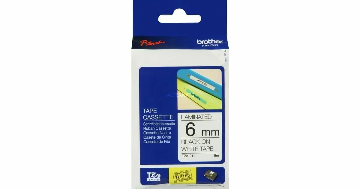 Brother เทปพิพม์อักษร TZE-211 ขนาด 6 mm. พื้นสีขาว ตัวอักษรสีดำ ยาว 8 เมตร