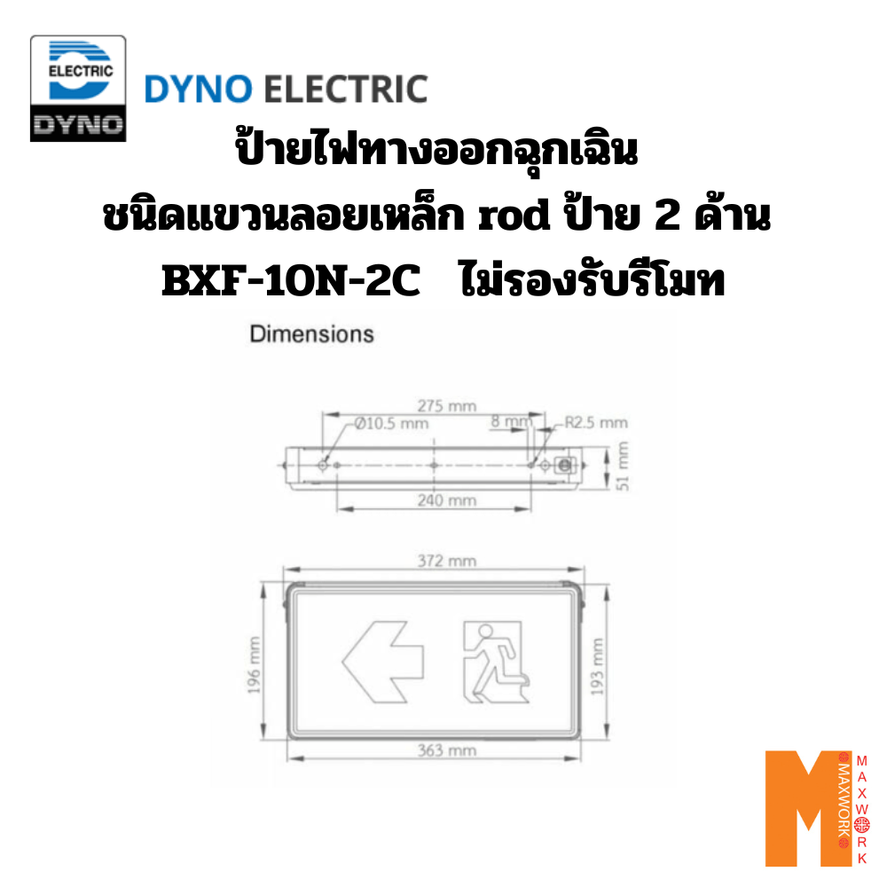 DYNO ป้ายทางออกฉุกเฉิน รุ่น BXF-10N-2C ชนิดกล่อง แบบแขวนลอยเหล็ก ROD ป้าย 2 ด้าน ไม่รองรับรีโมท(ราคารวม VAT แล้ว)