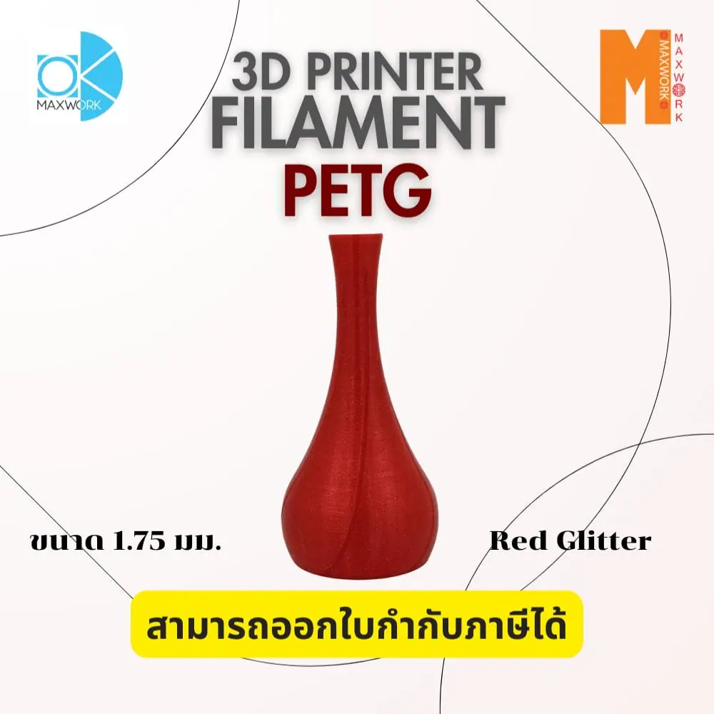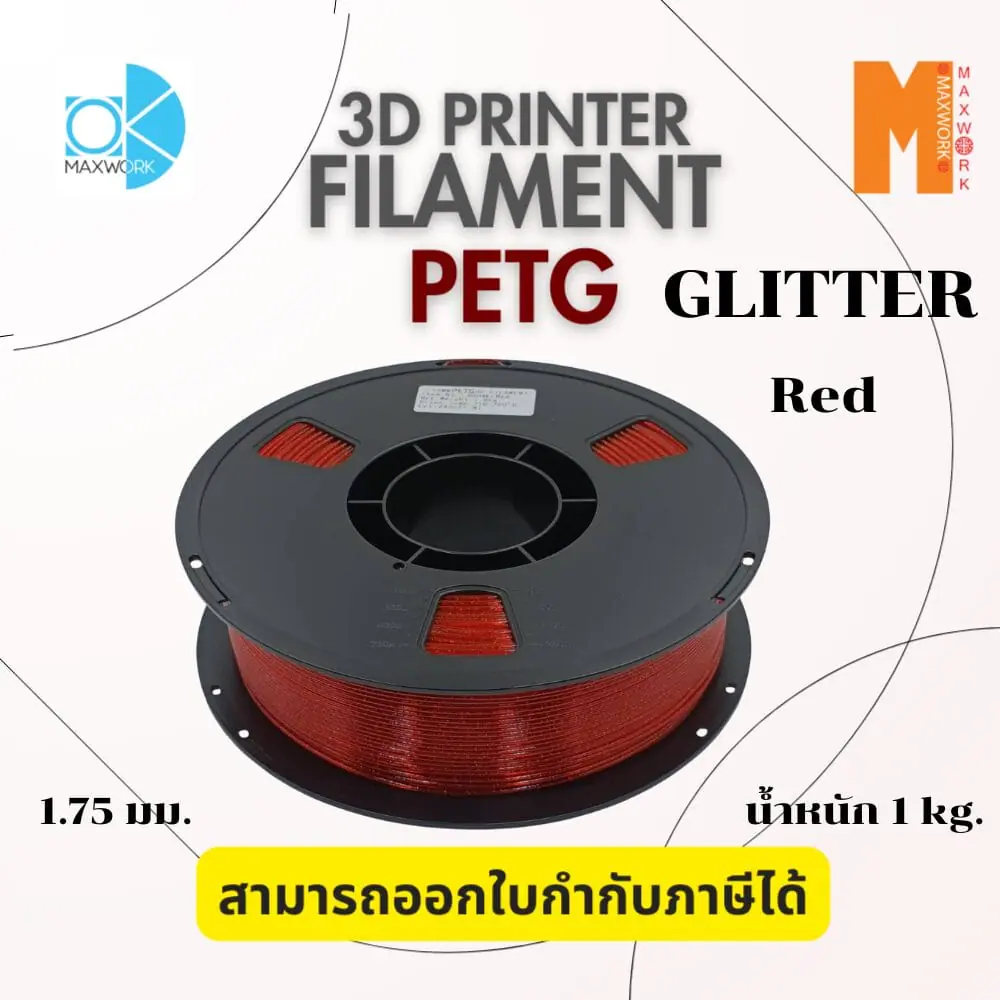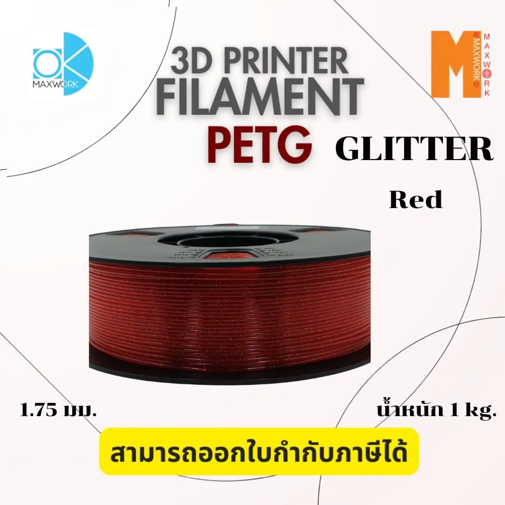 Ok Maxwork filament PETG Glitter Red ขนาด 1.75mm./1kg. สีแดง